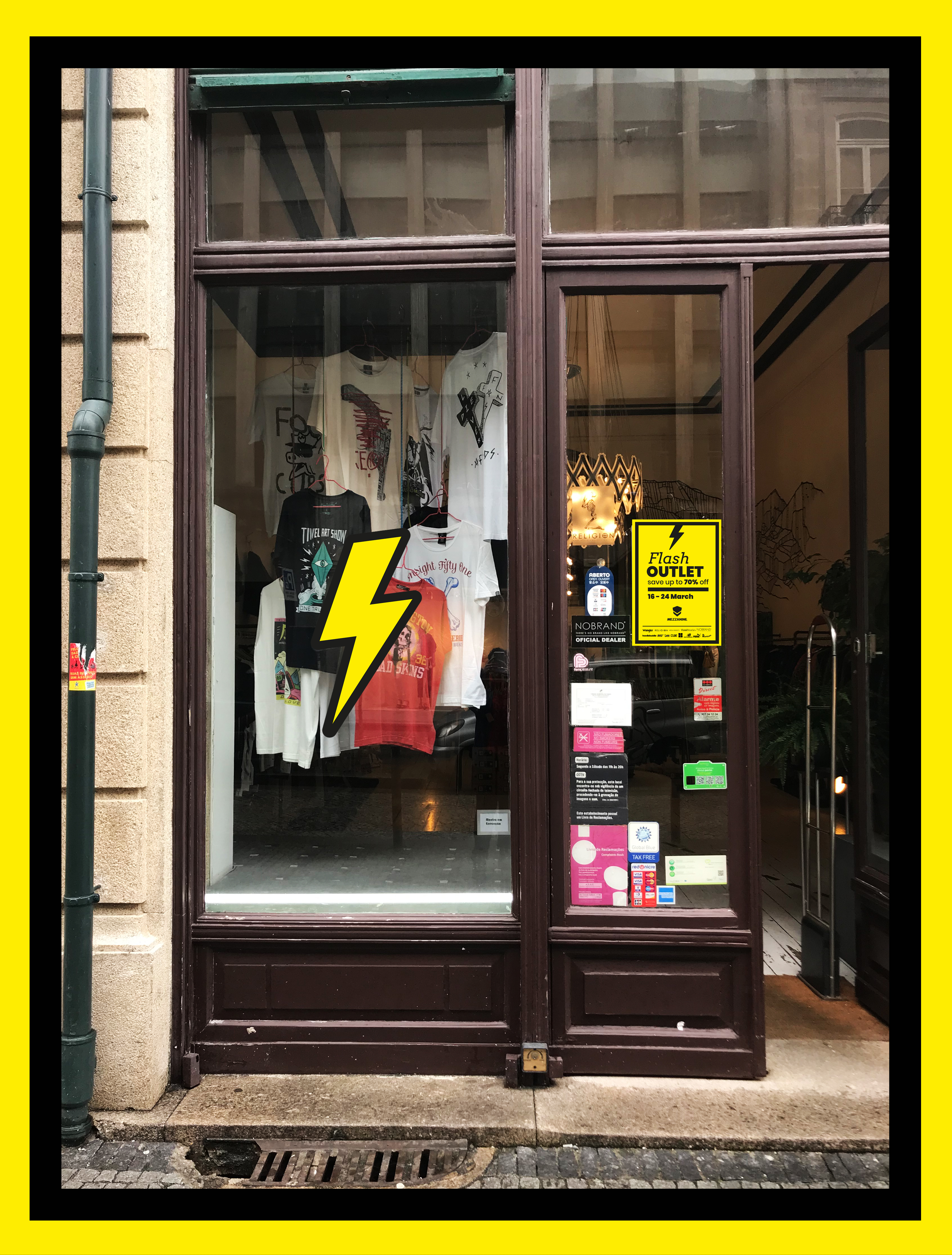 Tittle: "Flash Outlet - Mezzanine" | Year: 2018 | Graphic Design: Joana Rocha Window Dresser: Helena Guerreiro