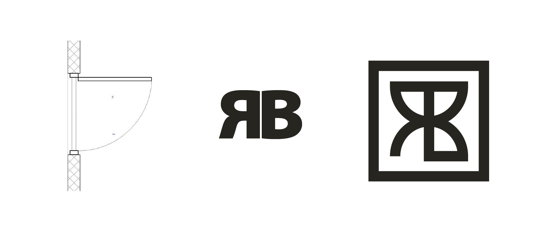 The design concept is inspired by architectural sketches, particularly the representation of an open door. The brand’s initials, RB, were integrated into this idea, symbolizing openness and structure.